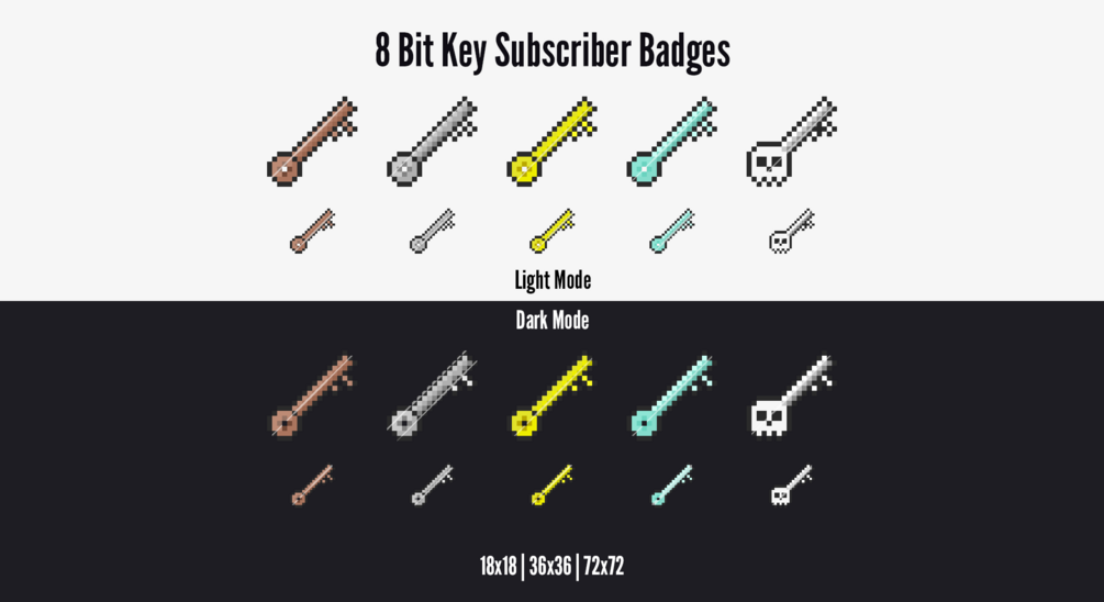 These 8-bit Key badges come in the following sizes; 18x18px, 36x36px and 72x72px.